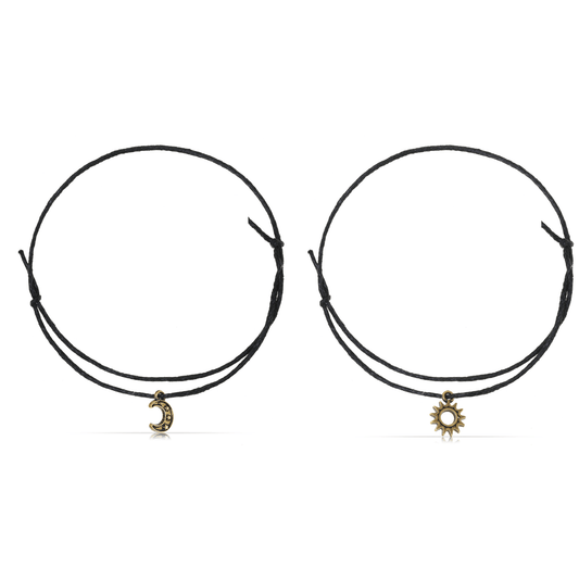Sun & Moon Fußkettchen Set Damen – Schwarz & Gold