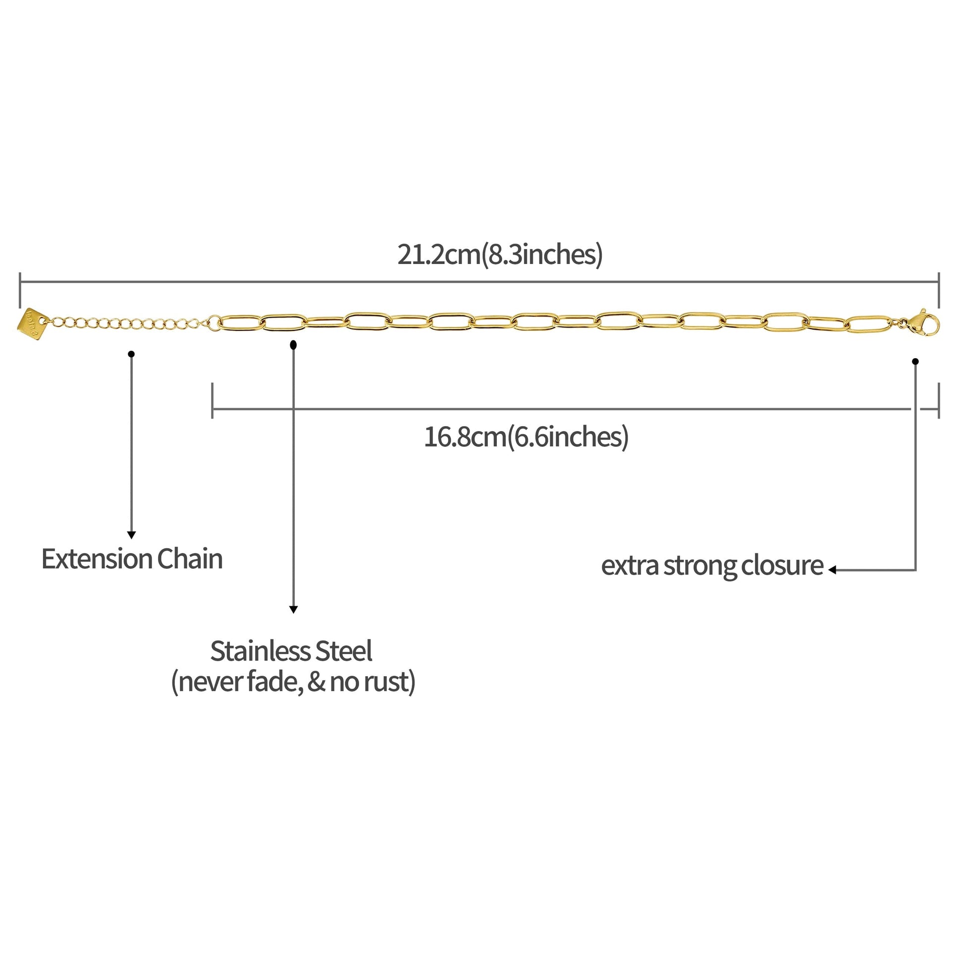 • Verstellbare Länge: 16 cm + 4 cm Verlängerungskette für den perfekten Sitz an jedem Handgelenk.