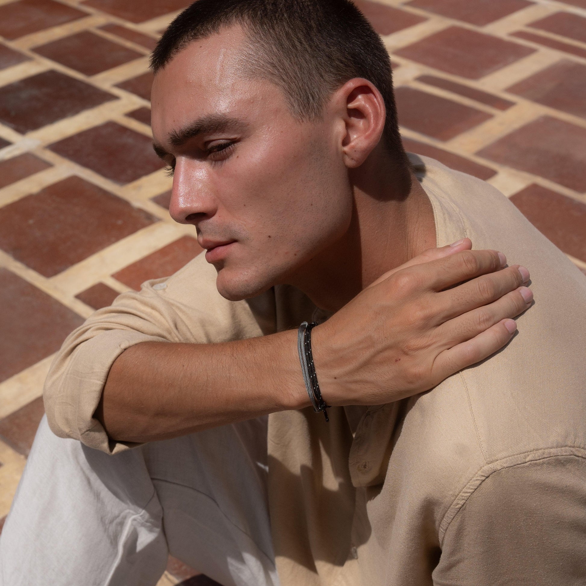 Das Made by Nami Surfer Armband Set (2er) in Schwarz & Grau ist der perfekte Mix aus maritimem Minimalismus und moderner Coolness.
