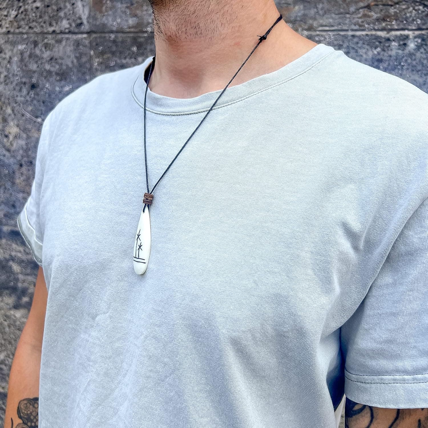 Bring den Beach-Vibe in deinen Alltag! Unsere handgefertigte Surfer Halskette mit Surfbrett-Anhänger aus Kunstharz ist das perfekte Accessoire für Sommer, Strand und Festivals. Der Anhänger zeigt ein Palmen-Motiv und ist mit Holz- und Kokosperlen kombiniert – für den authentischen Surfer-Look.