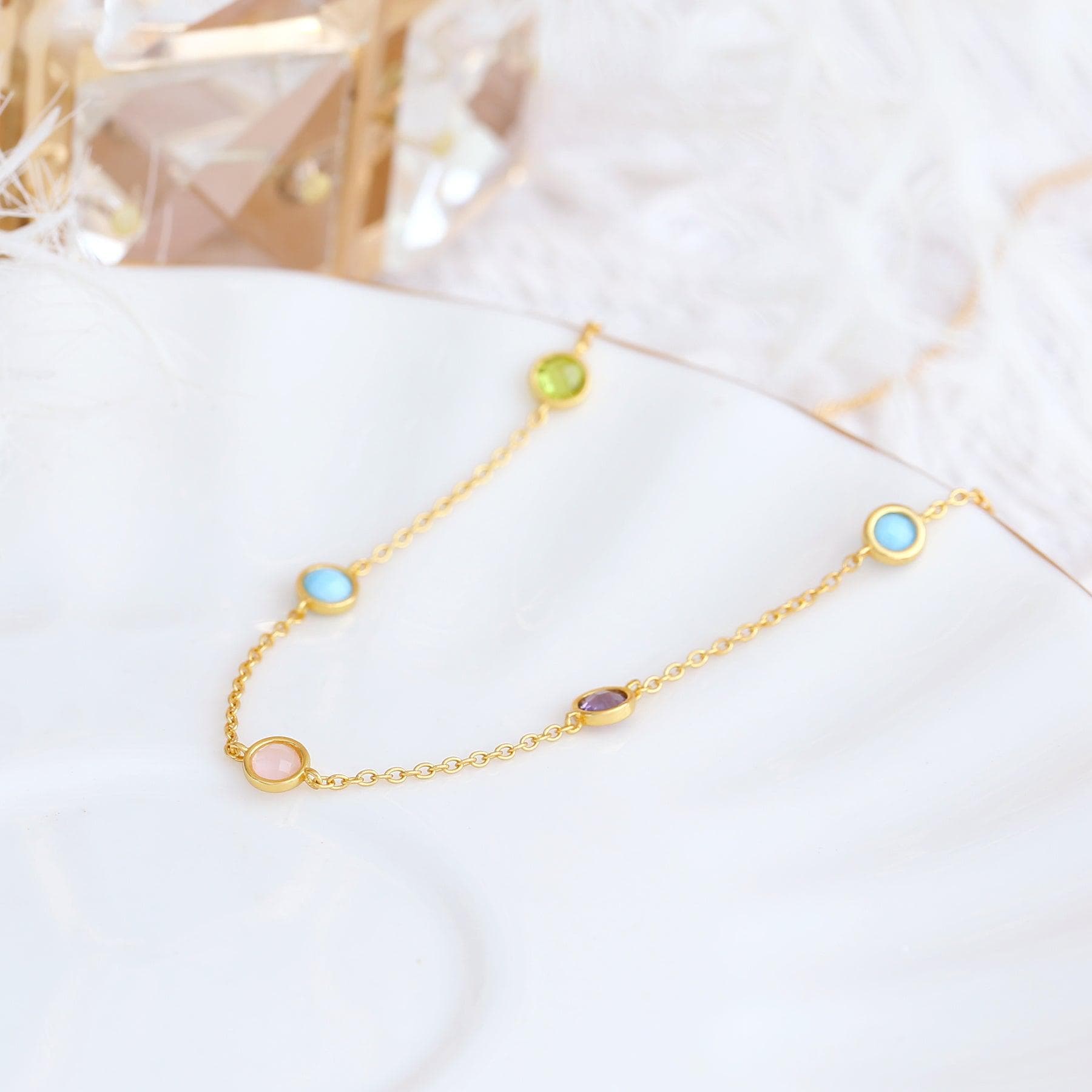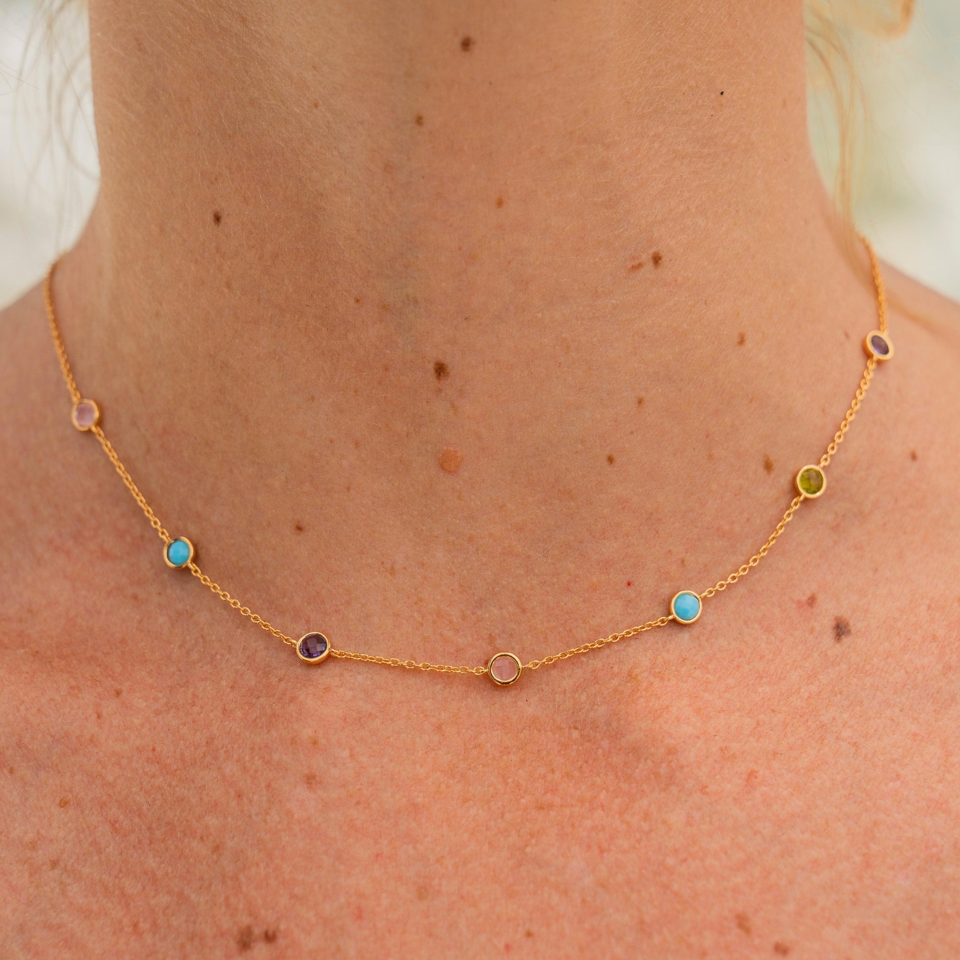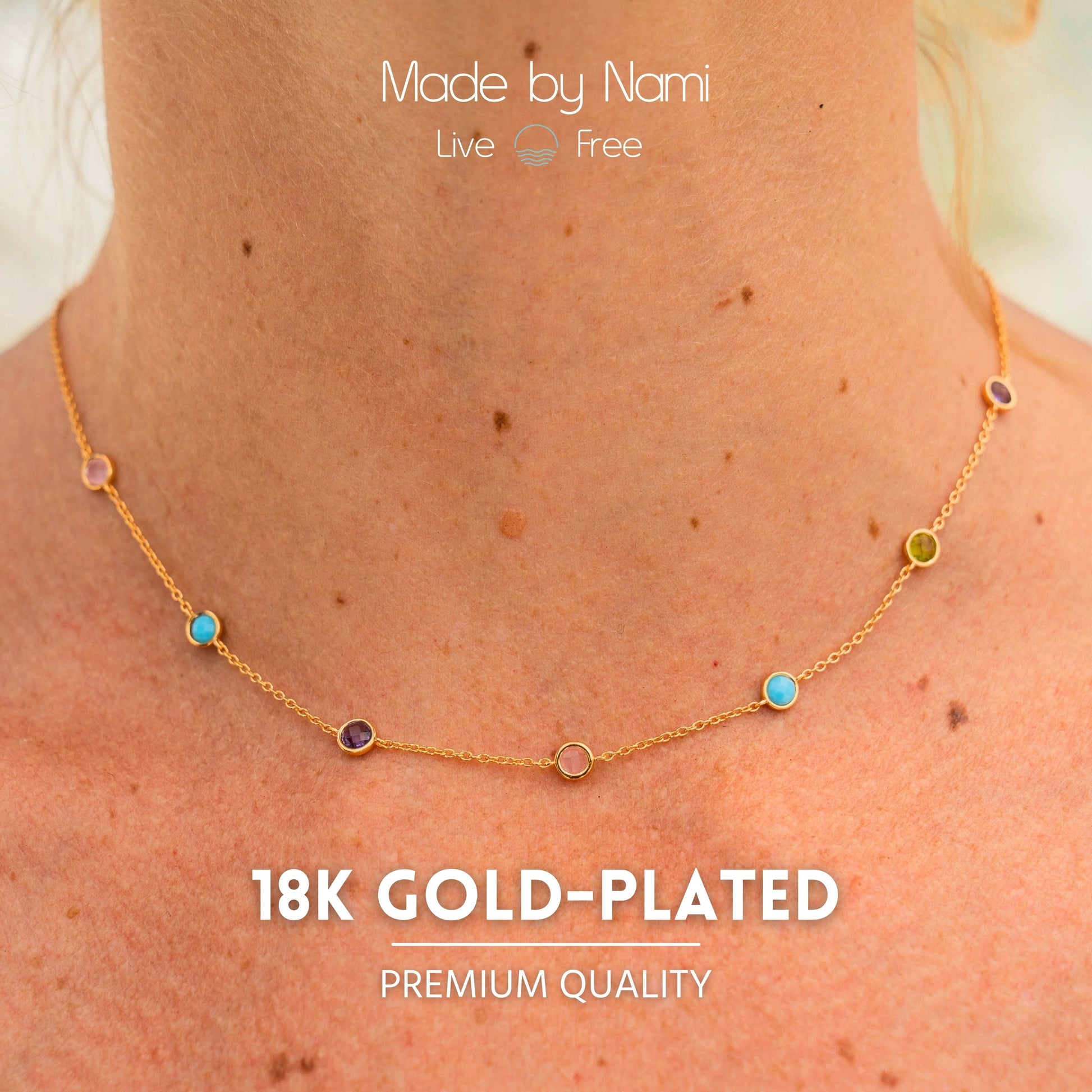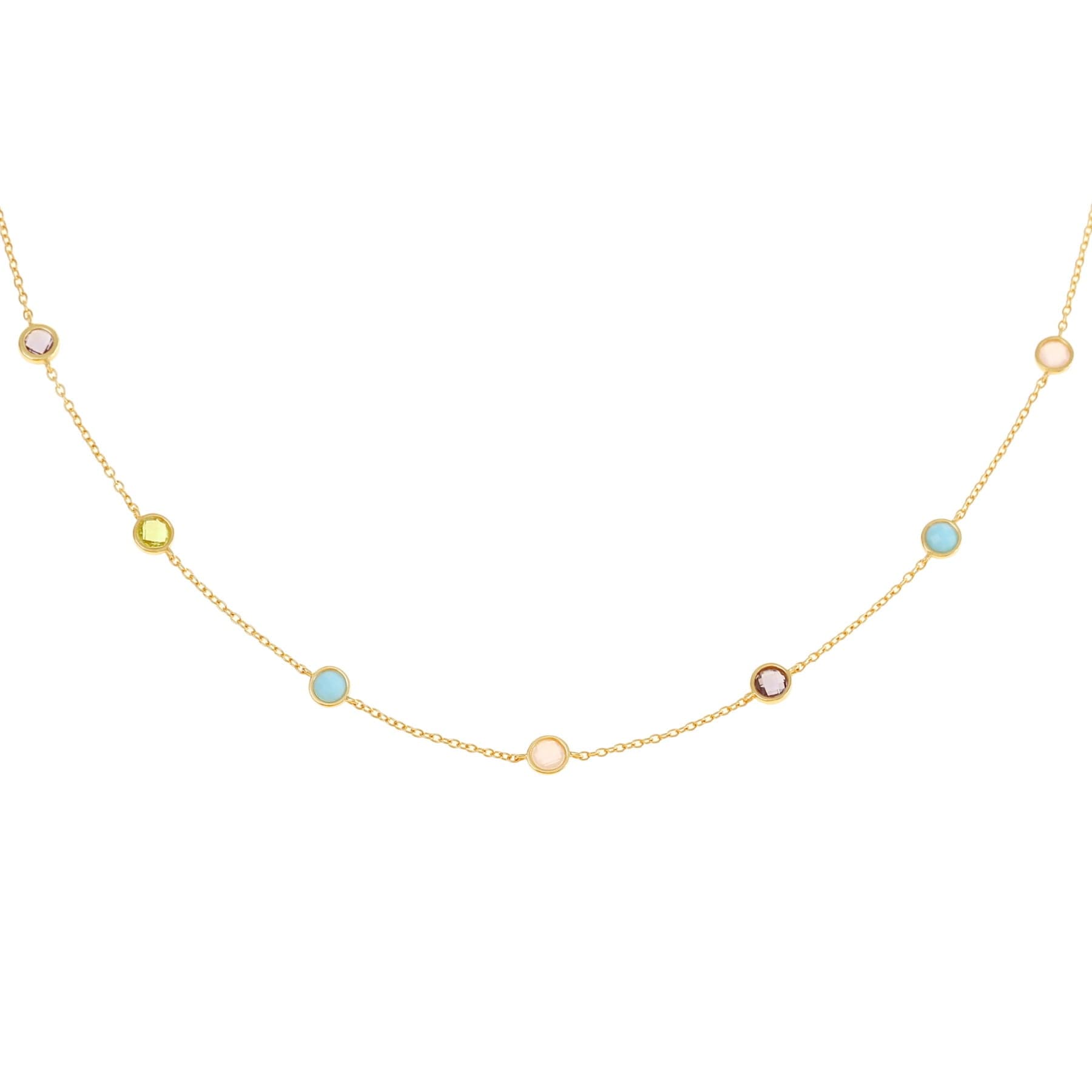Bring Farbe und Leichtigkeit in deinen Look mit unserer goldenen Kette mit echten, farbigen Edelsteinen. Das zarte Design aus 925 Sterling Silber mit 18K Vergoldung kombiniert elegante Schlichtheit mit sommerlichen Farbakzenten – perfekt für den Alltag, Urlaub oder besondere Anlässe.