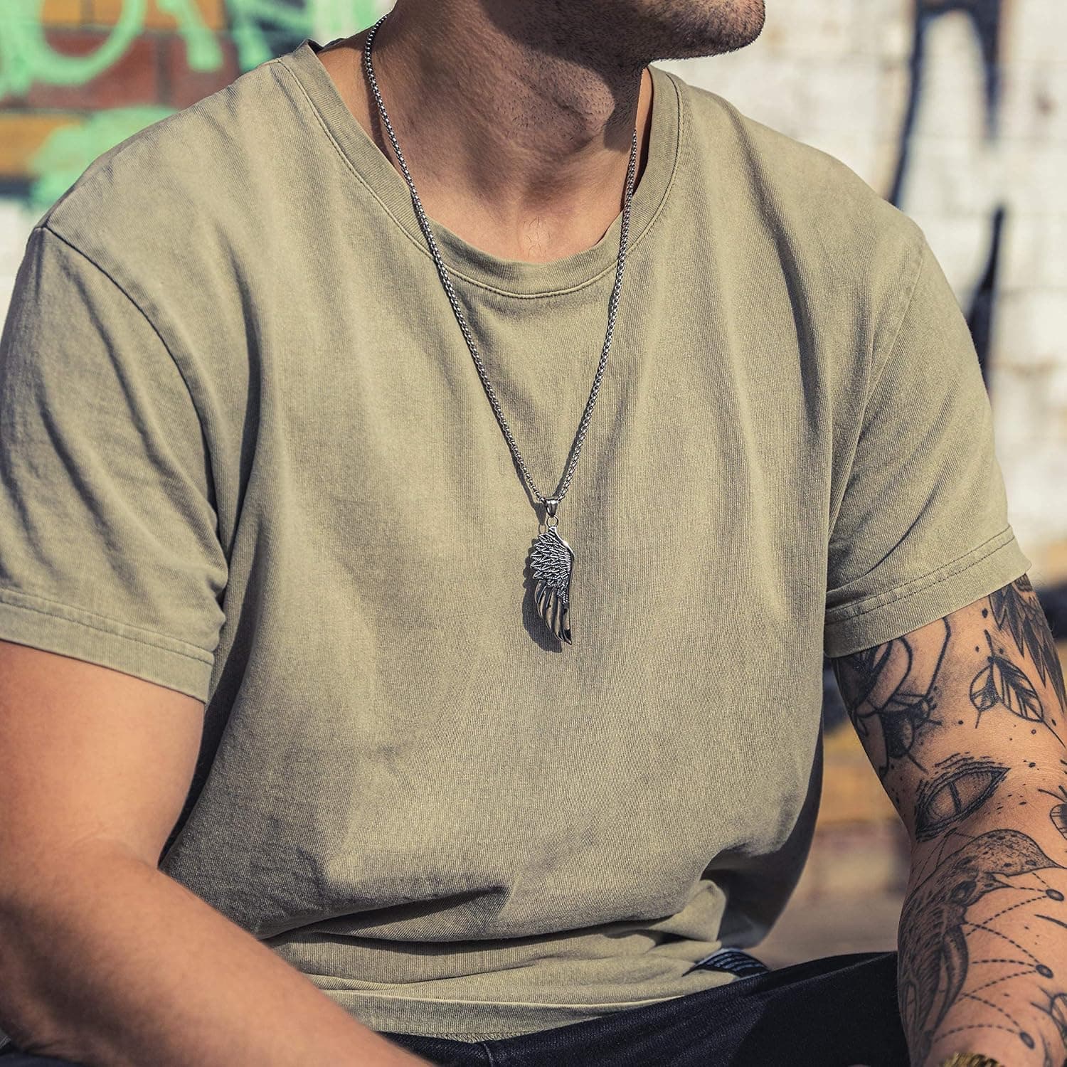 Diese markante Viking Necklace mit detailreichem Flügel-Anhänger ist das perfekte Accessoire für Männer, die Stärke und Freiheit verkörpern.