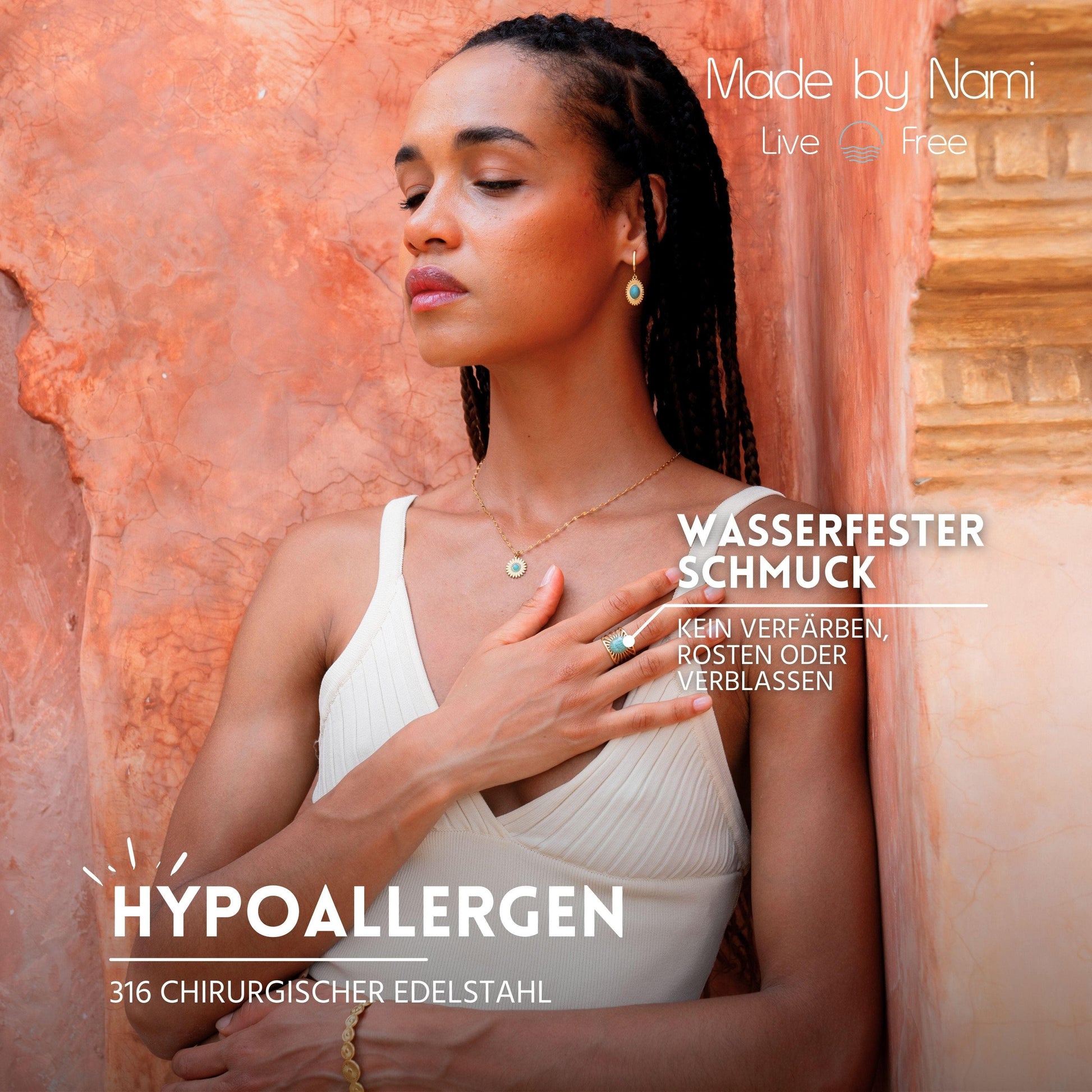• Hochwertige Materialen » Unsere Boho Ring ist aus hochwertigem Chirurgischem 316 Edelstahl gefertigt und mit einer 18K Goldlegierung überzogen. Der Ring mit Edelstein ist besonders hautfreundlich und angenehm zu tragen - auch für empfindliche Haut geeignet.