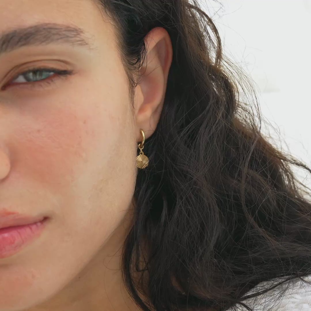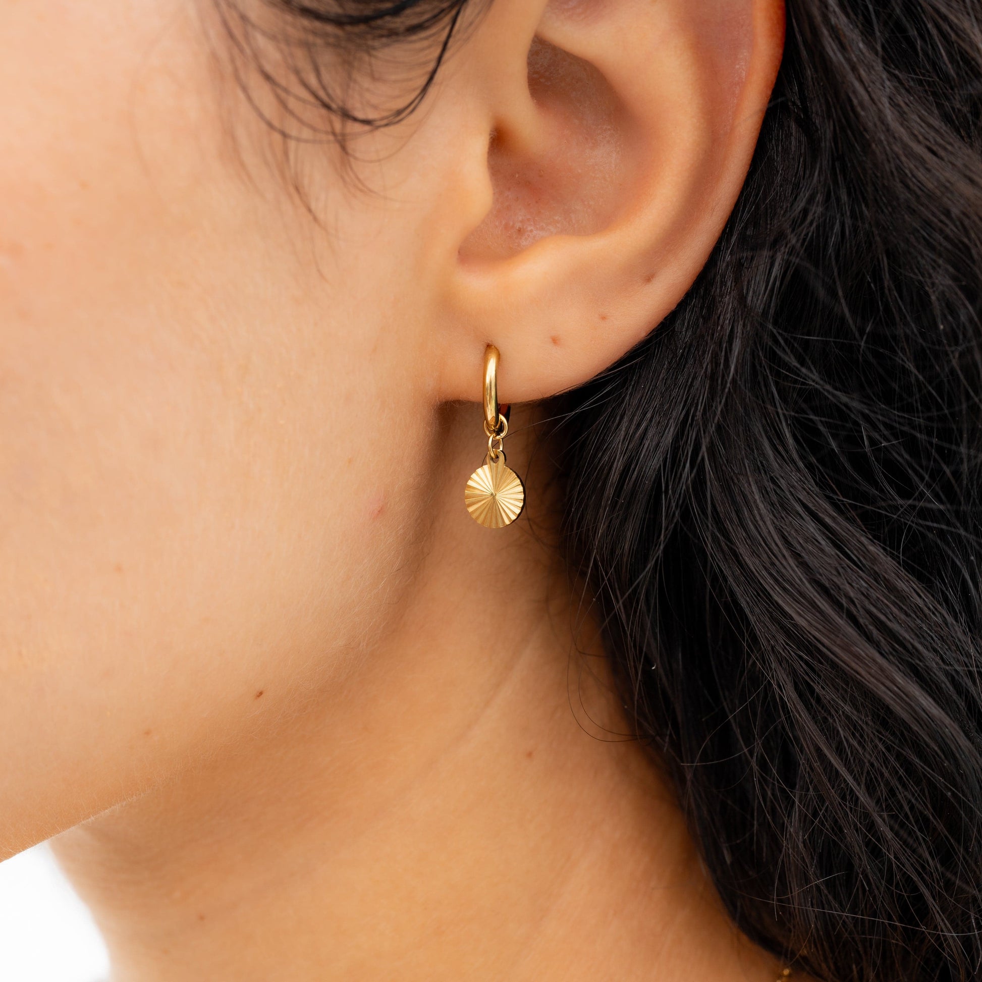 Entdecke unsere goldenen Mandala Creolen – stilvolle Ohrringe mit filigranem Sonnenanhänger für deinen modernen Boho-Look. Die leichten Hängeohrringe sind aus hochwertigem 316L Chirurgenstahl gefertigt und mit 18K Gold überzogen – hypoallergen, wasserfest und farbbeständig. Ihr feiner 3D-Struktureffekt erinnert an Sonnenstrahlen und bringt Glanz in jedes Outfit. Perfekt für Alltag und besondere Anlässe.