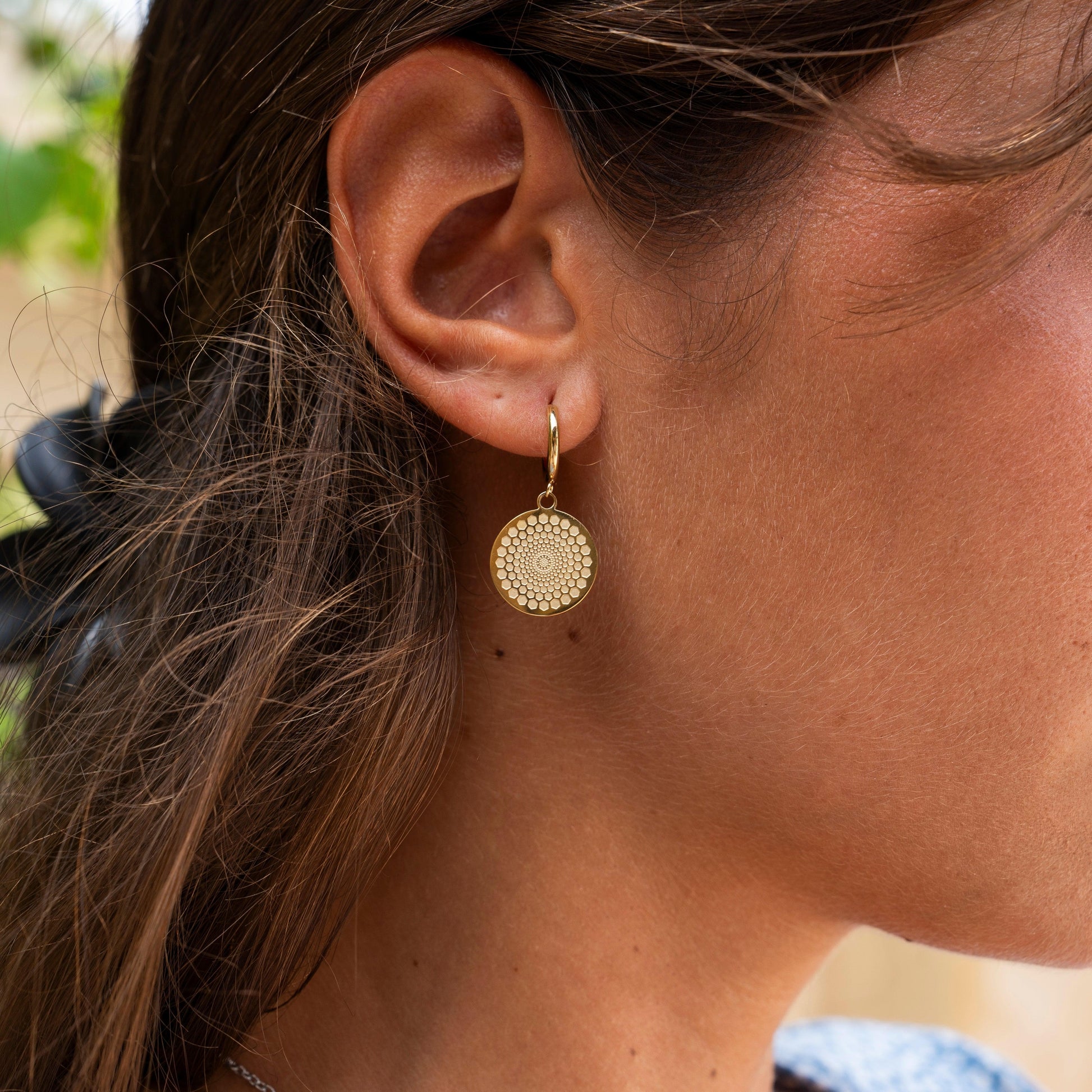 • Besondere Bedeutung » Die Punkte des Mandala Designs sind angeordnet wie eine Sonne. Unsere Ohrringe Gold Hängend symbolisieren Wärme und Energie. Entdecke die Eleganz und den Zauber unser Damenohrringe.